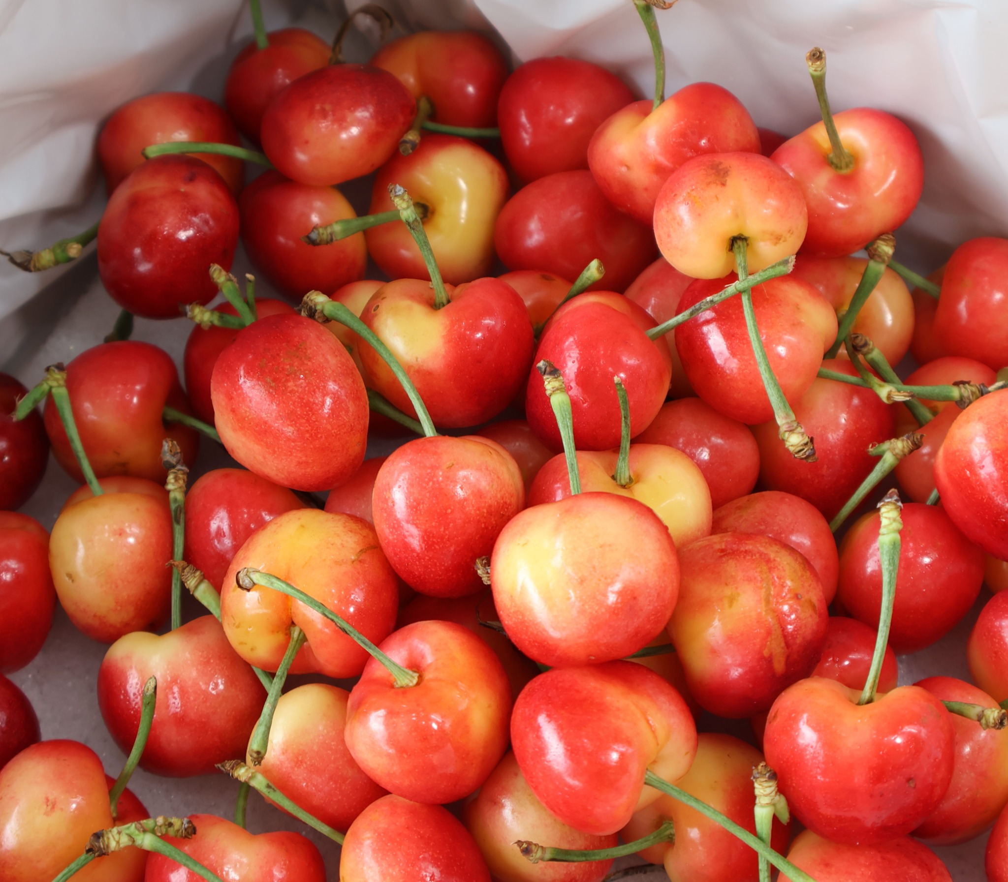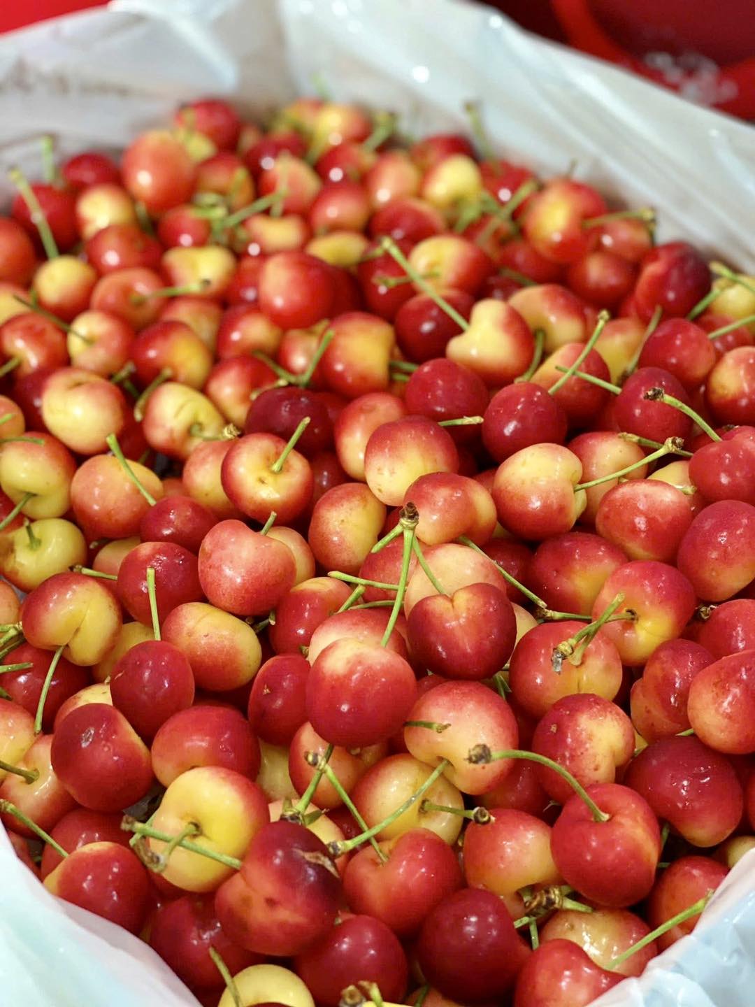 Trái cherry vàng óng ánh, cuống tươi, thịt giòn – ăn cực kỳ đã miệng