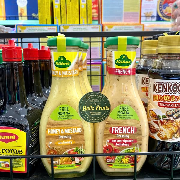 - Công dụng: Dùng để trộn salad, các món rau củ hoặc dùng làm nước sốt cho các món ăn như sandwich, thịt nguội, hoặc các món ăn nhanh. Sốt trộn salad KIIHNE French giúp món ăn thêm phần đậm đà và hấp dẫn.