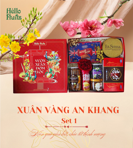 Giỏ quà Xuân Vàng An Khang Set 1 là sự kết hợp hoàn hảo giữa các sản phẩm dinh dưỡng và ngon miệng, mang đến lời chúc sức khỏe, an khang và tài lộc cho người nhận trong dịp Tết.